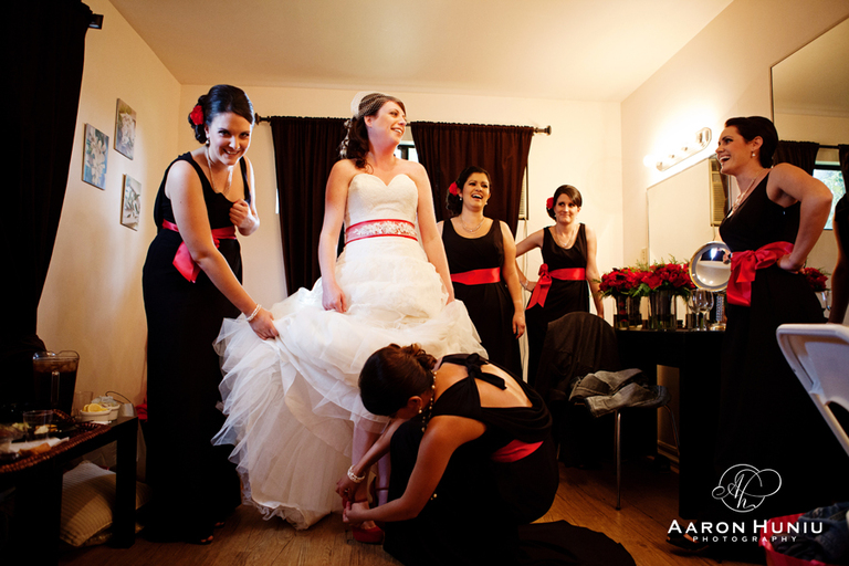 Jessica: I brought toms to change into for dancing shoes. My bridesmaids had to shove them on my feet because they were so swollen from my high heels. I couldn’t get my heels into the toms so I had them half on all night!